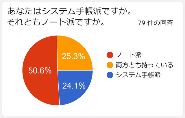 YOSHINAは昨年リリースした「利便性を追求した本革A5ノートカバー」の時に「ノートとシステム手帳の使用状況」についてアンケートを実施しました。その結果、「システム手帳派」、「両方とも持っている」を合わせると半数がシステム手帳を利用していることがわかりました。